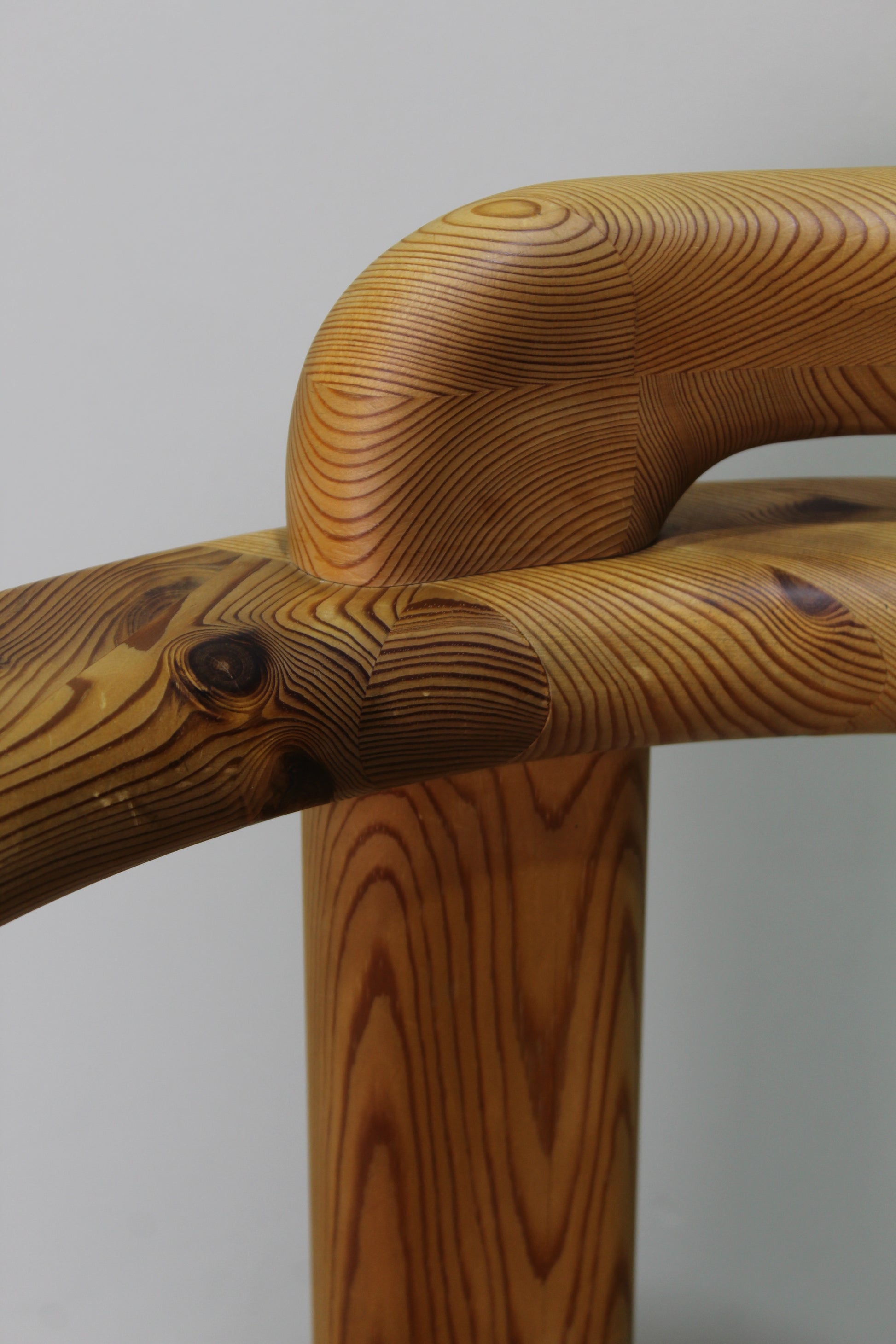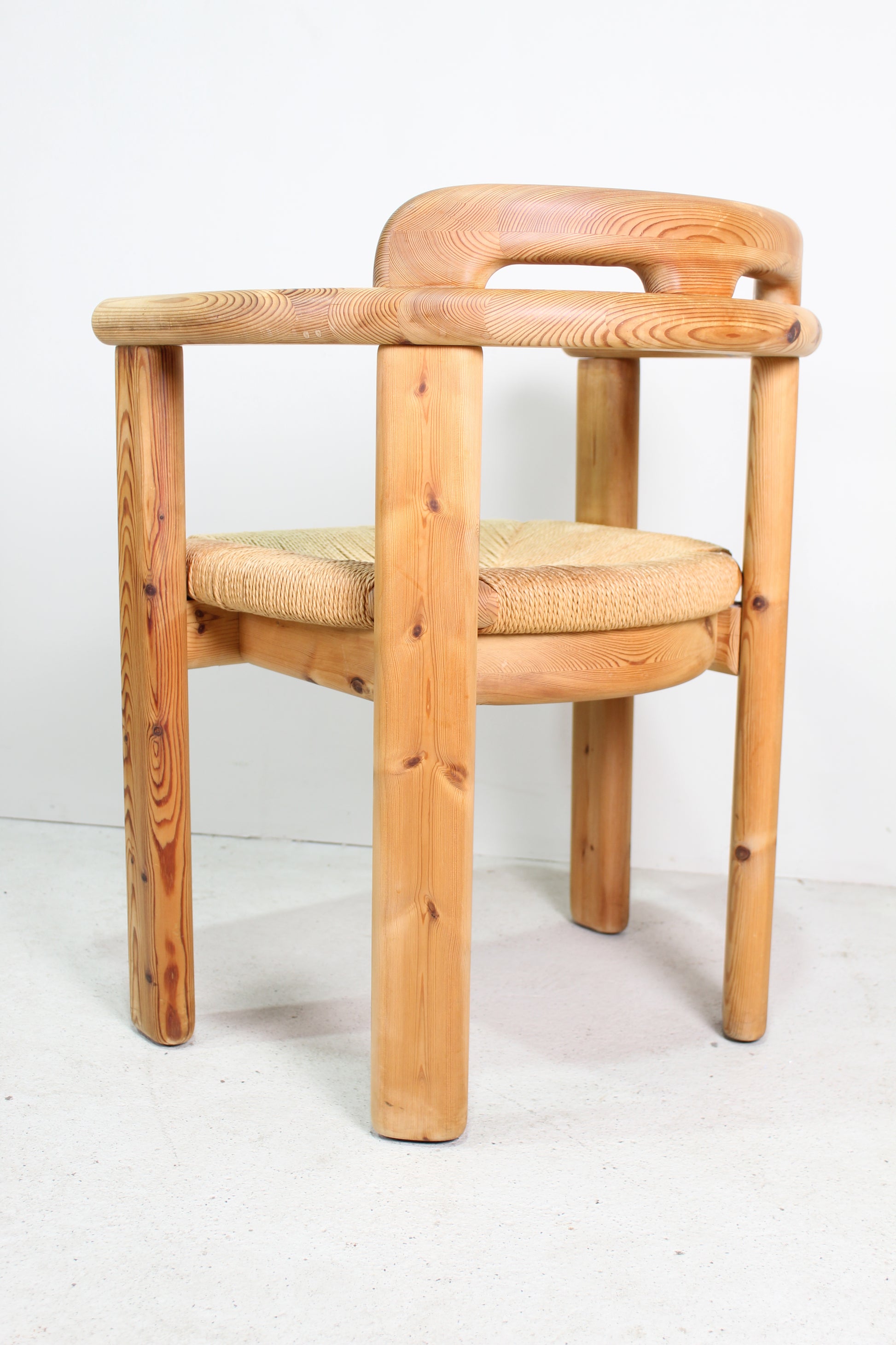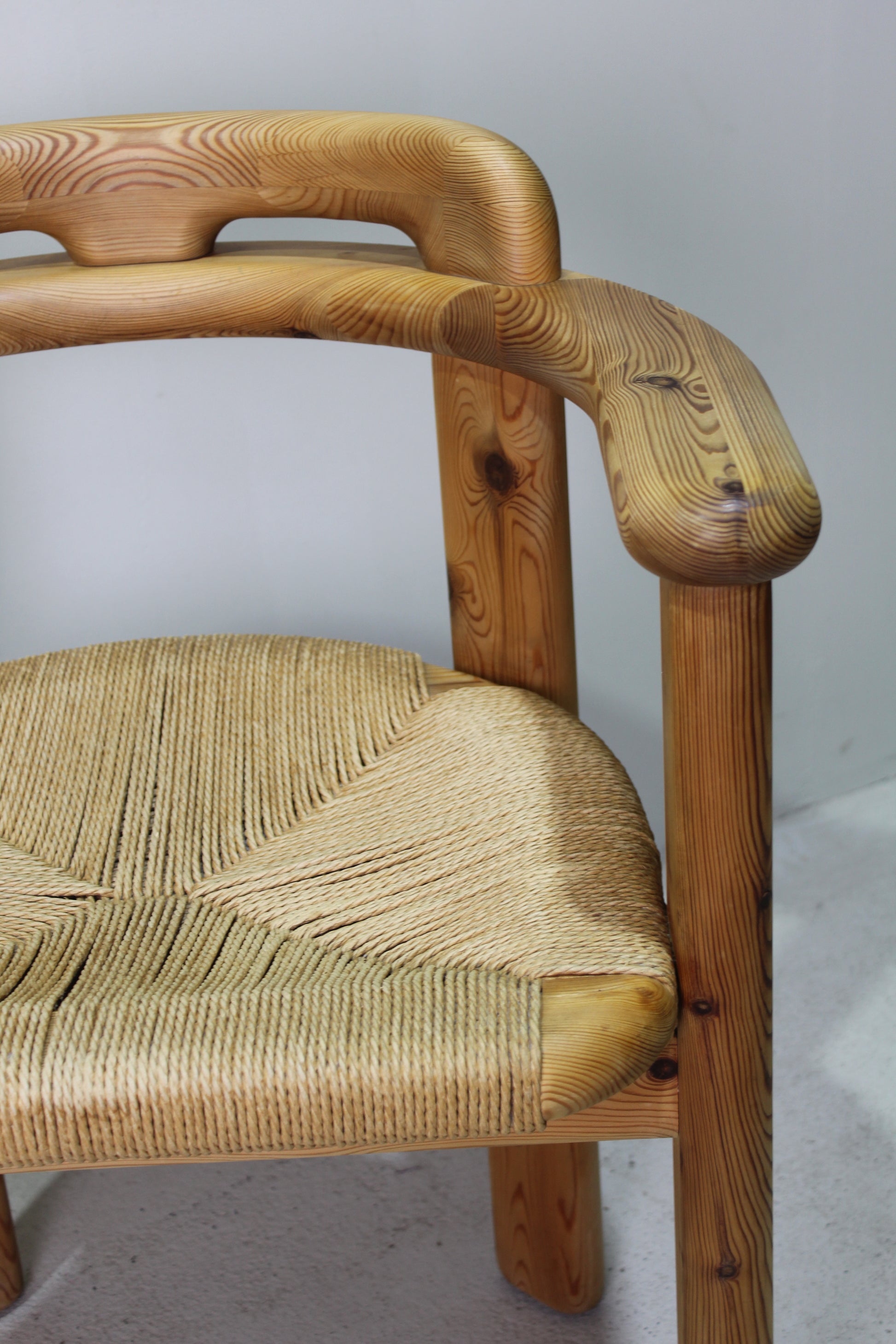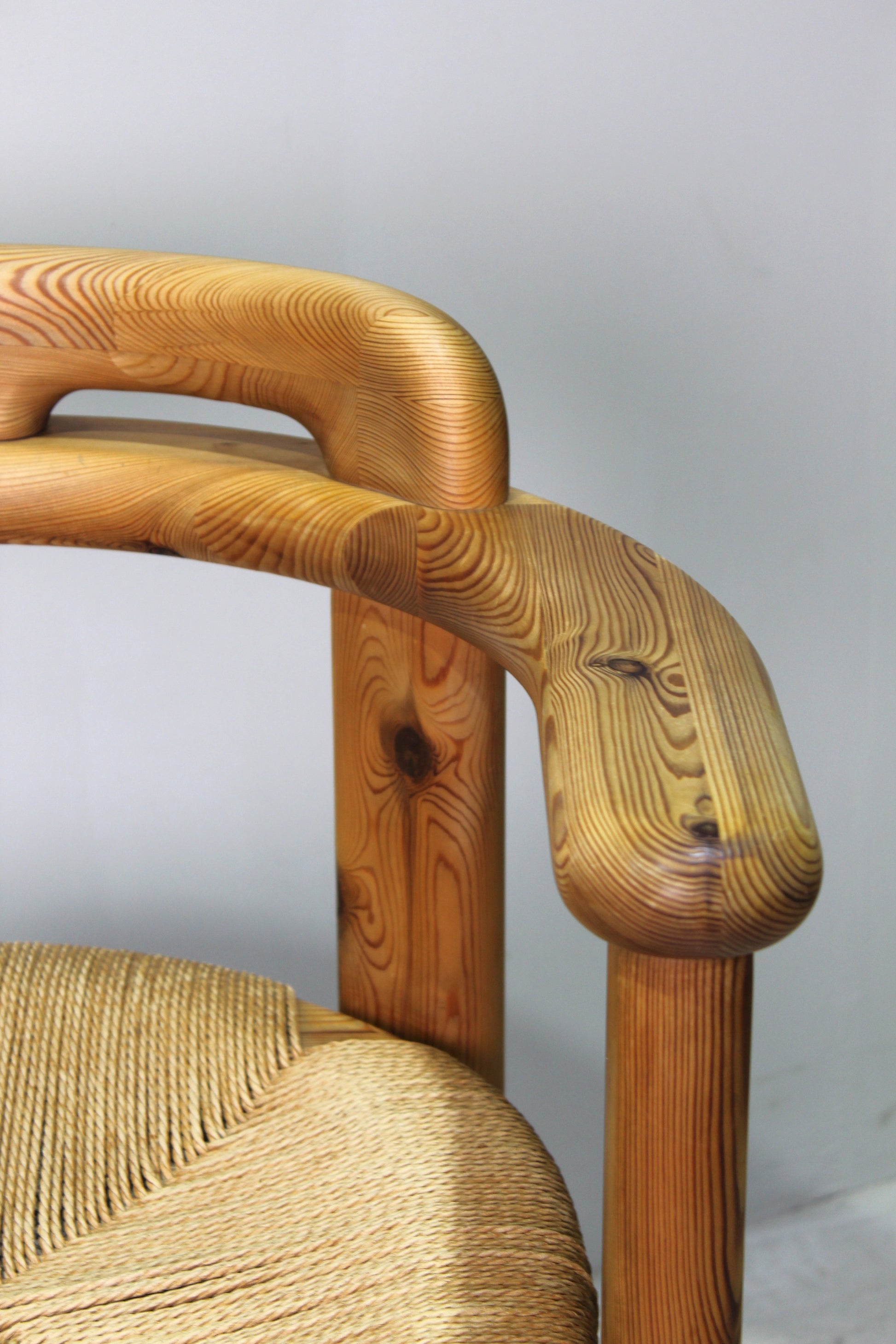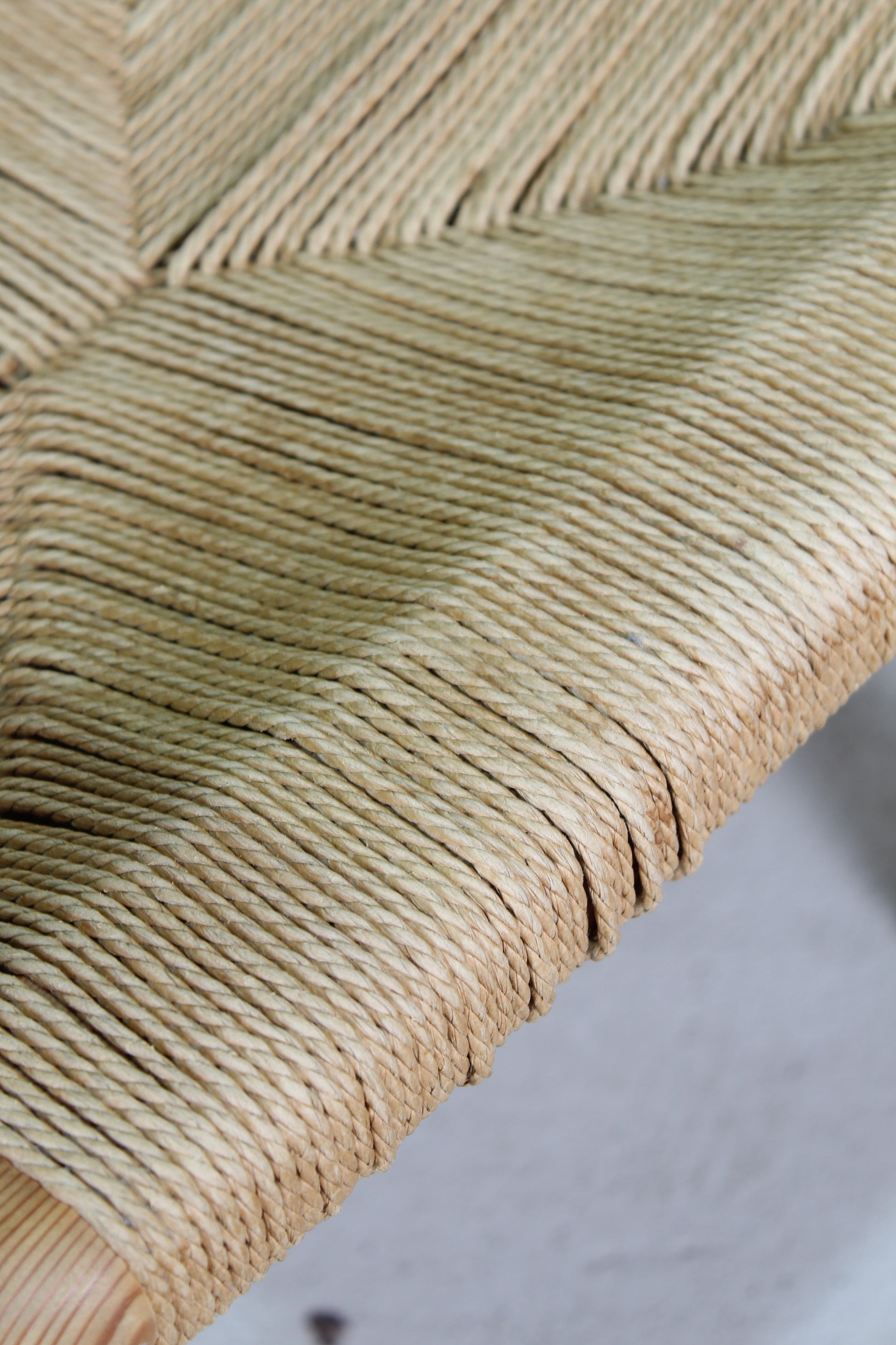 Deze massief grenen eetkamerstoel komt uit de jaren '70. Deze Scandinavische stoel is gemaakt in Rainer Daumiller stijl, en heeft een papercord zitting. Deze bijzondere houten stoel is heeft geweldige ronde afwerkingen.