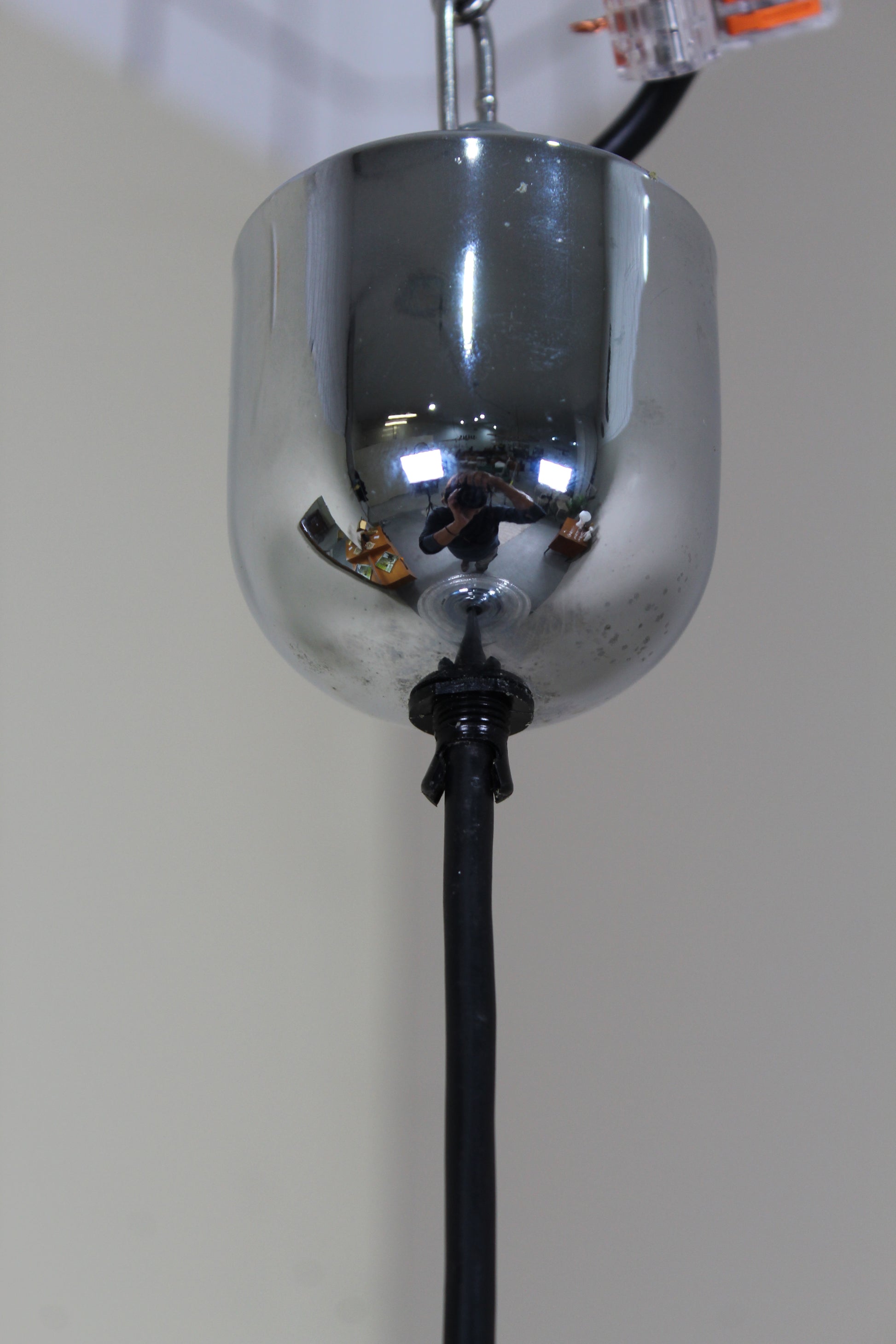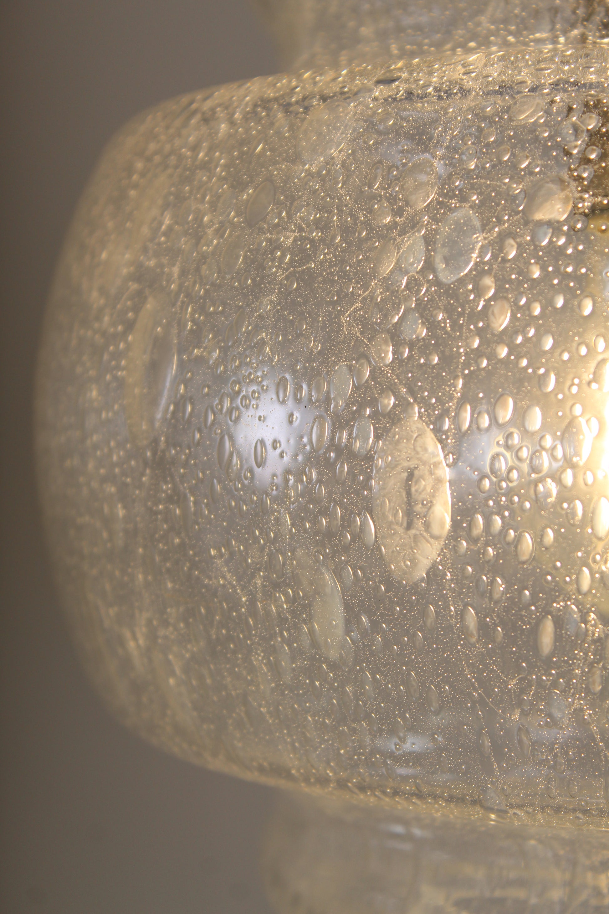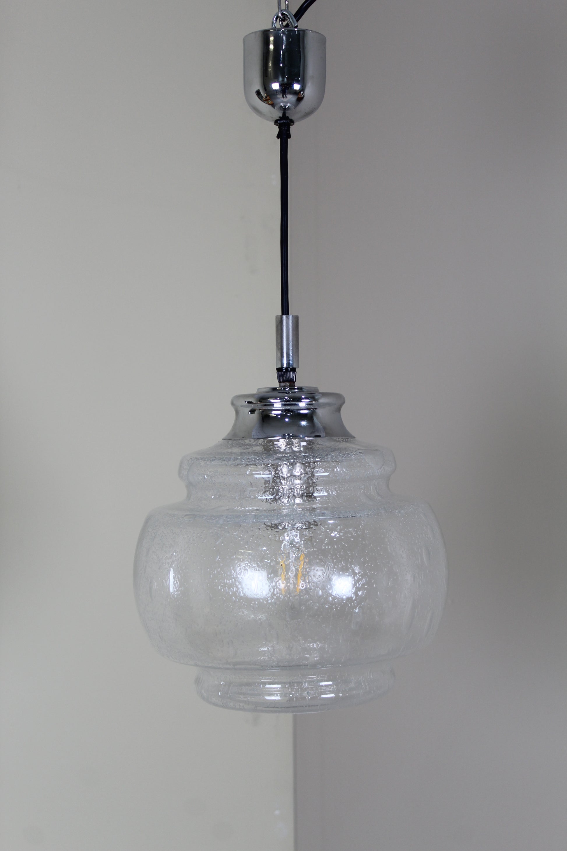 Mid century hanglamp uit de jaren '60 gemaakt van glas en chroom. Het glas is mondgeblazen en heeft geweldige bubbels die zorgen voor een magisch licht. De maker is helaas onbekend.