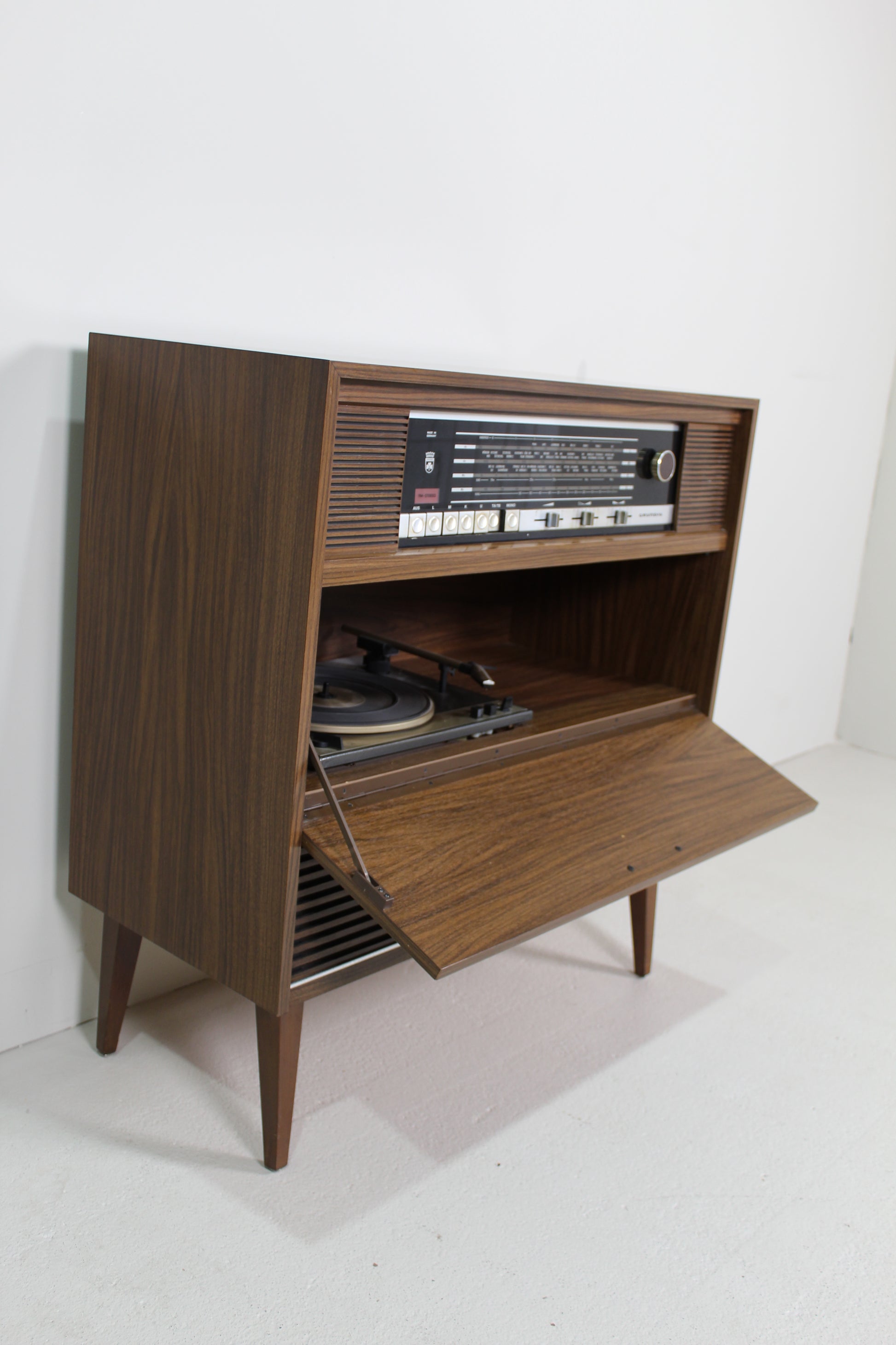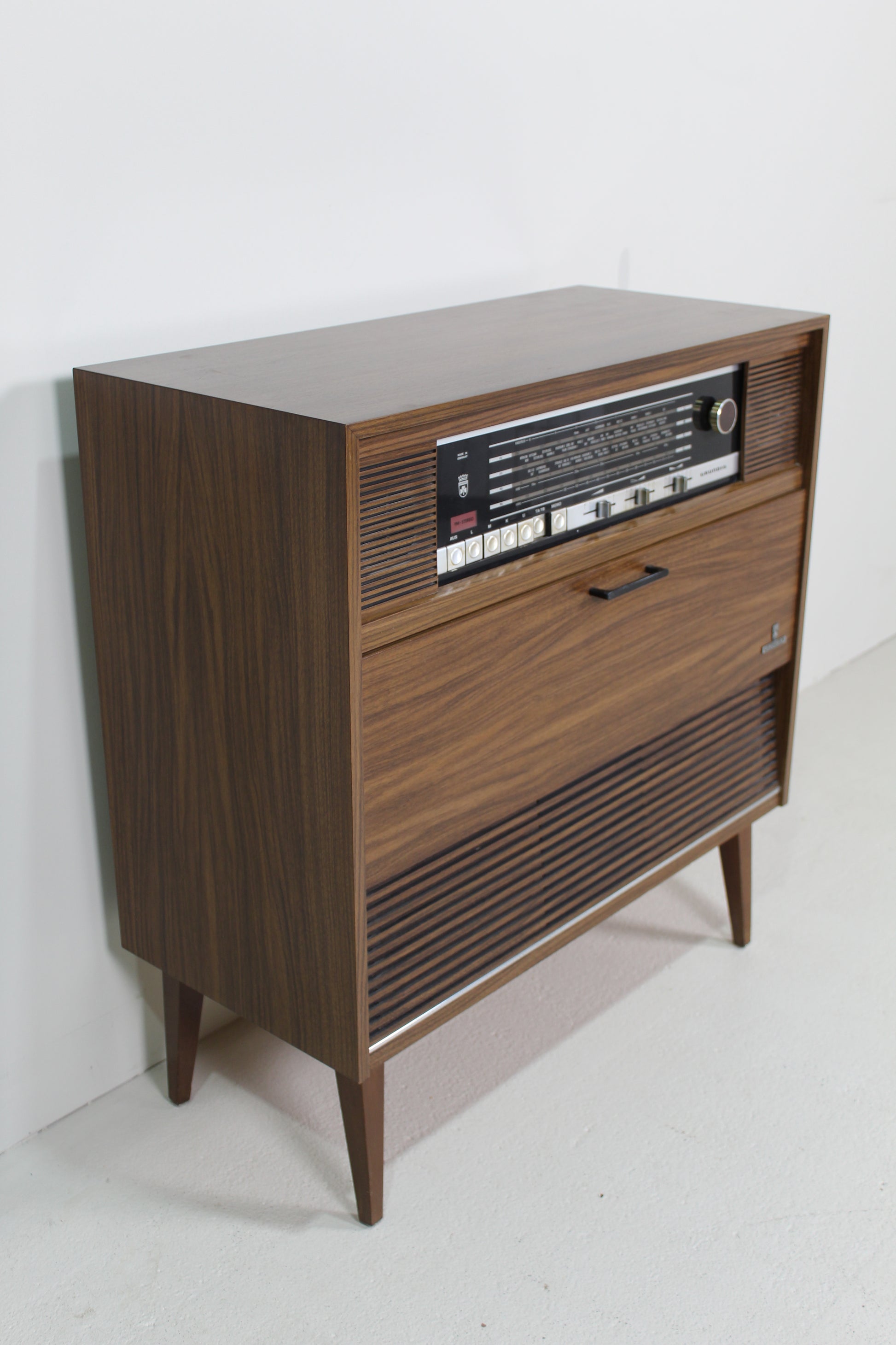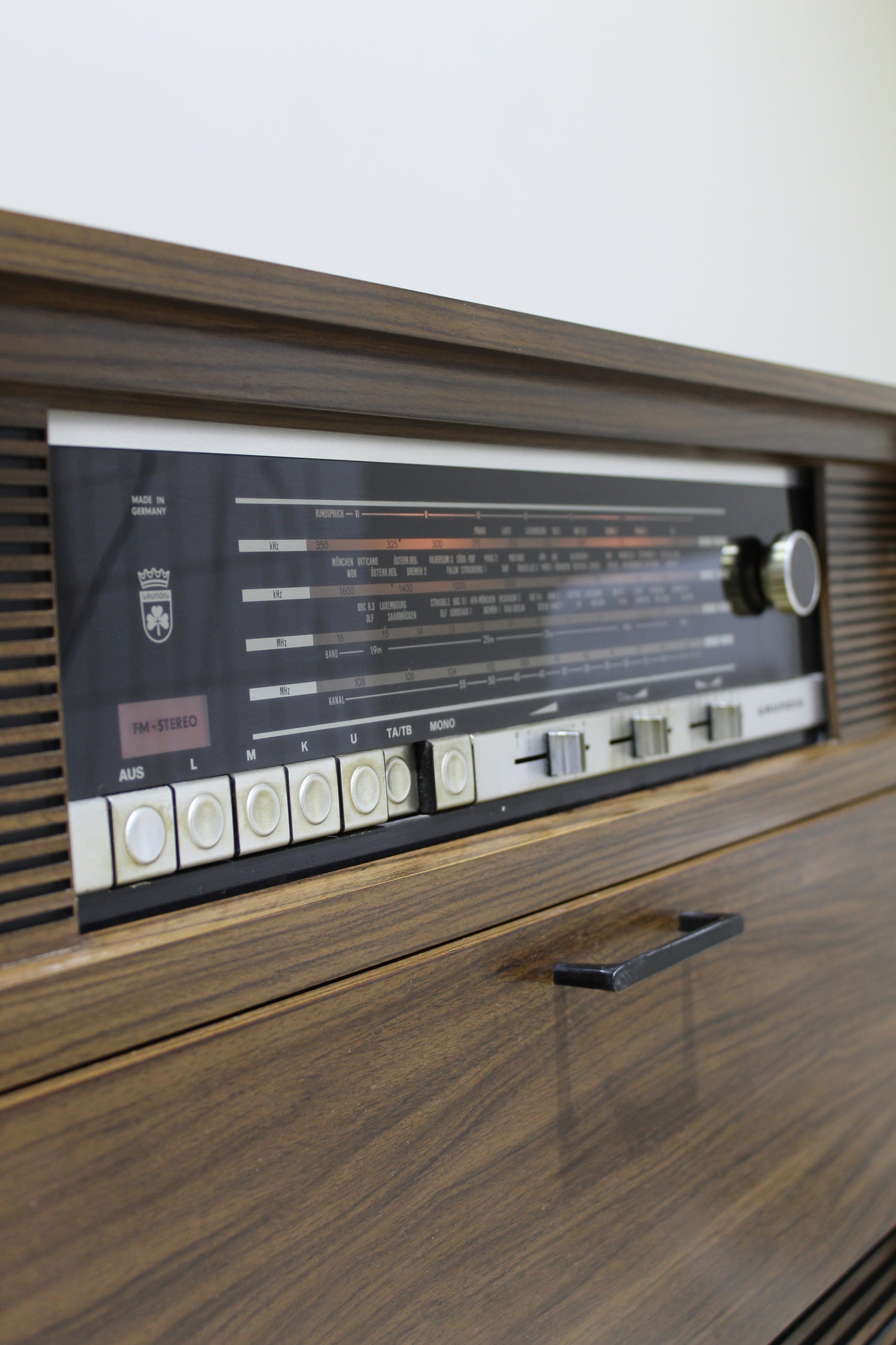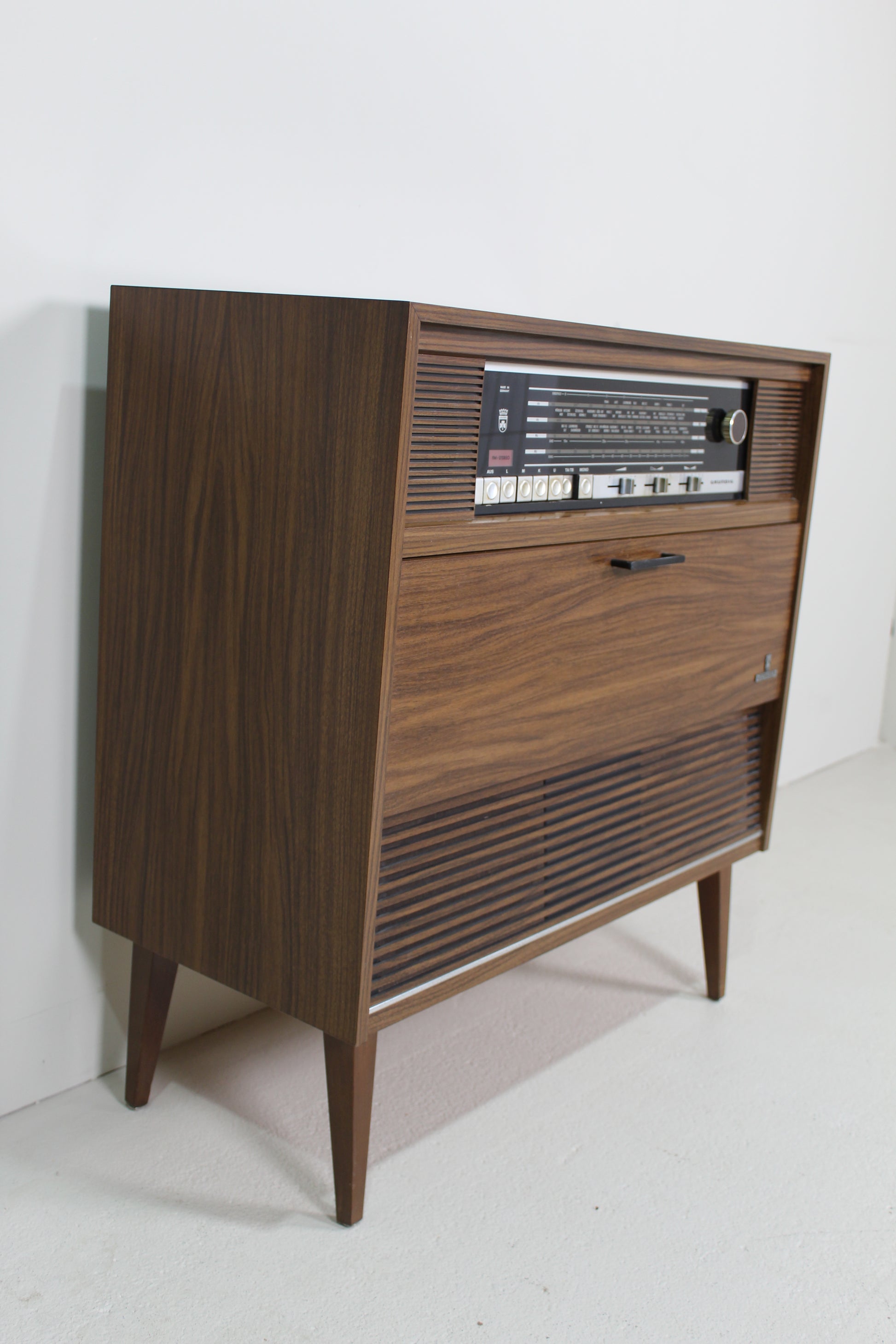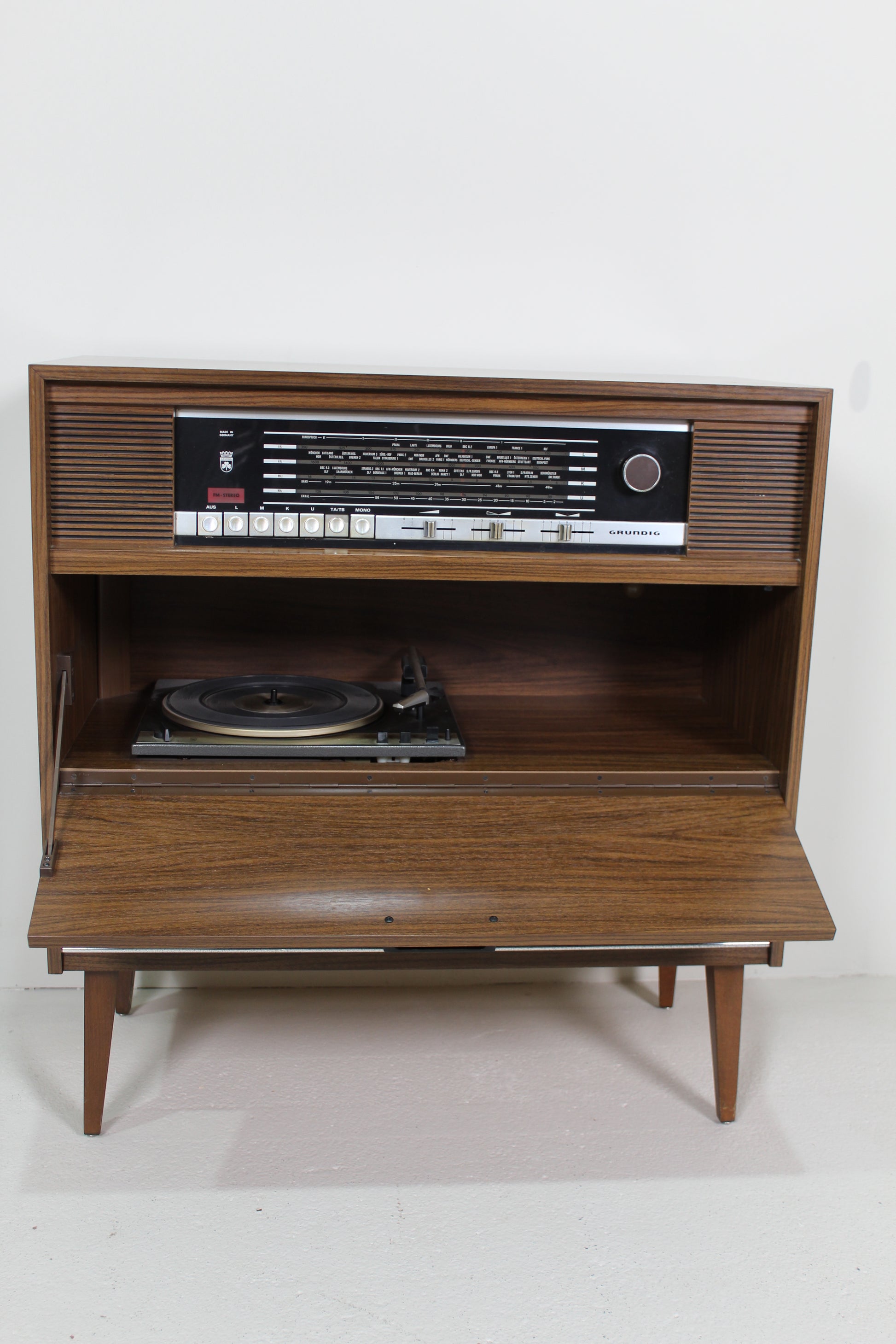 Muziekliefhebber én een vintageliefhebber? Dan is een mid century radiokast als deze wat voor jou. Hij komt uit de jaren '60/'70 en is van Gründig. De radio werkt naar behoren. De platenspeler helaas niet meer (al hebben de meeste platenspelers uit deze tijd het loodje gelegd). Je zou natuurlijk je moderne platenspeler erin kunnen plaatsen.