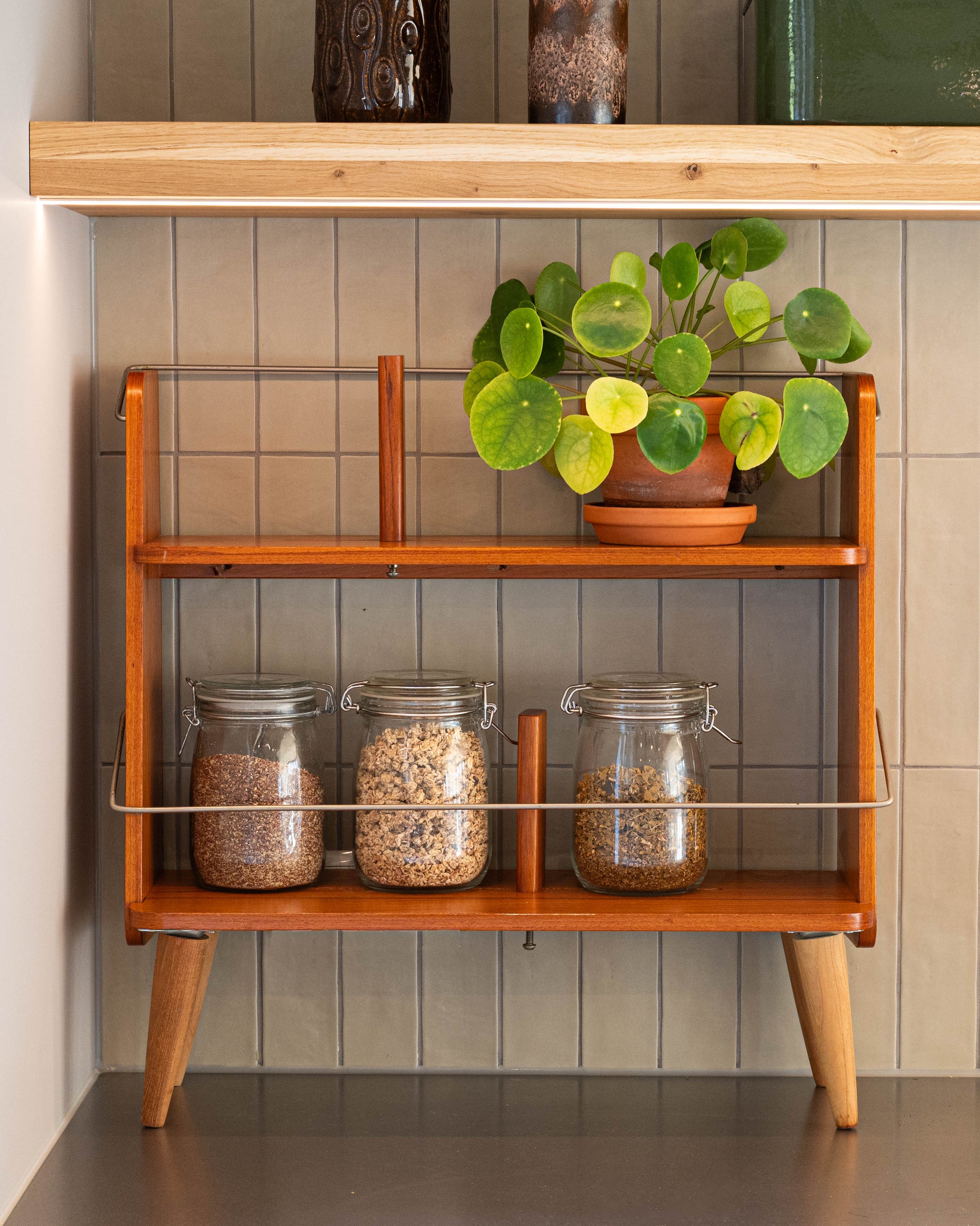 Vintage plantentafeltje, boekenkastje of plantenetagère. Afkomstig uit Denemarken uit de jaren '60. Ook leuk om bijvoorbeeld op je aanrecht te zetten met kruiden.
