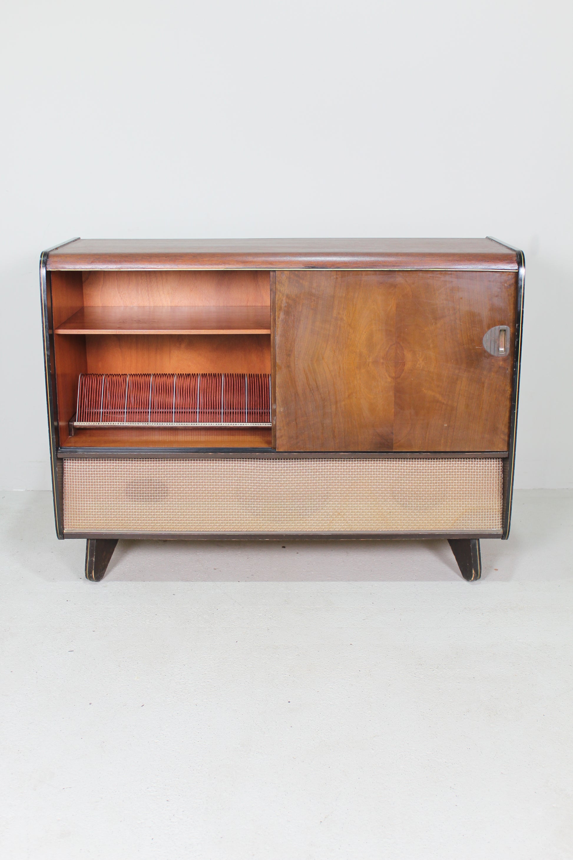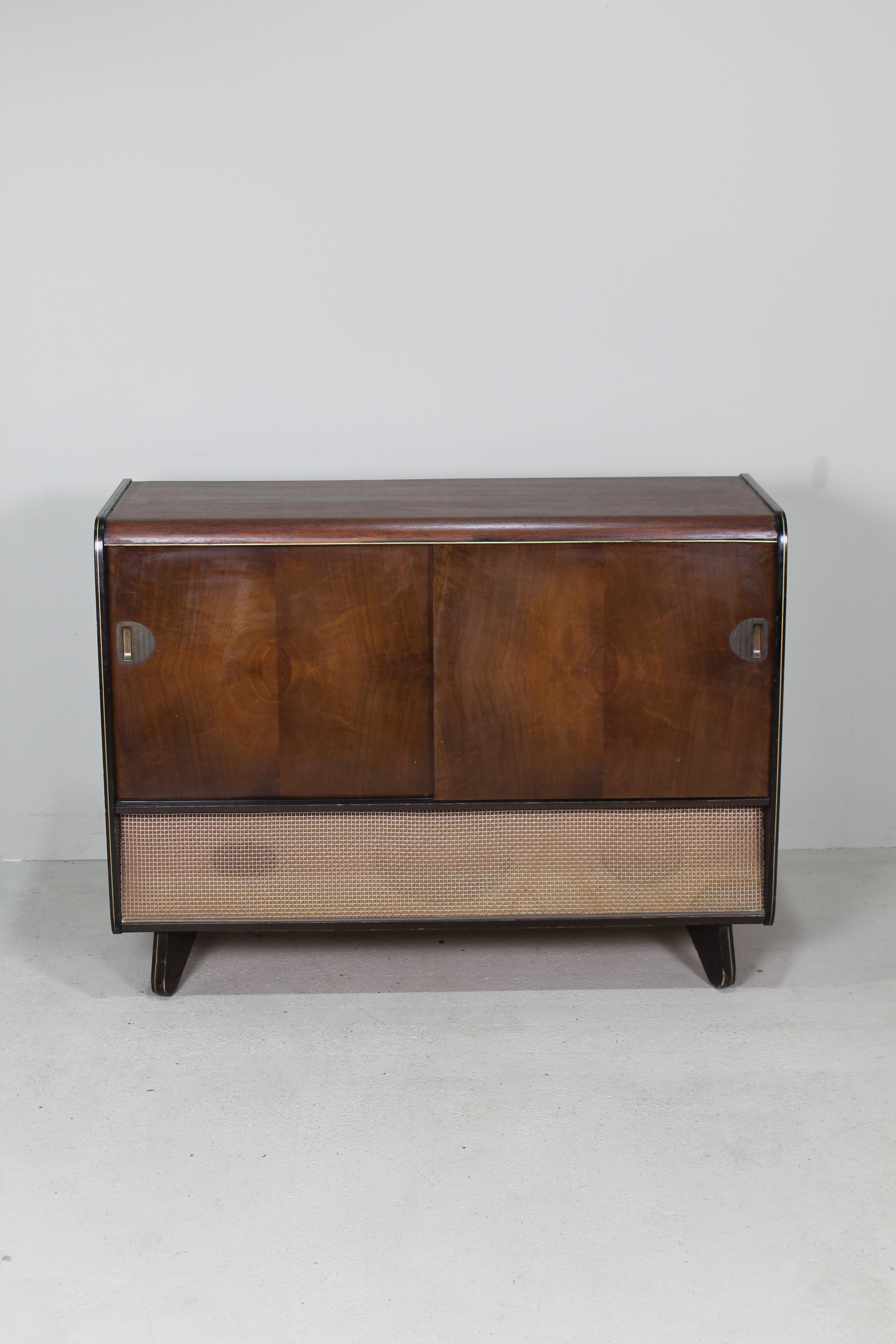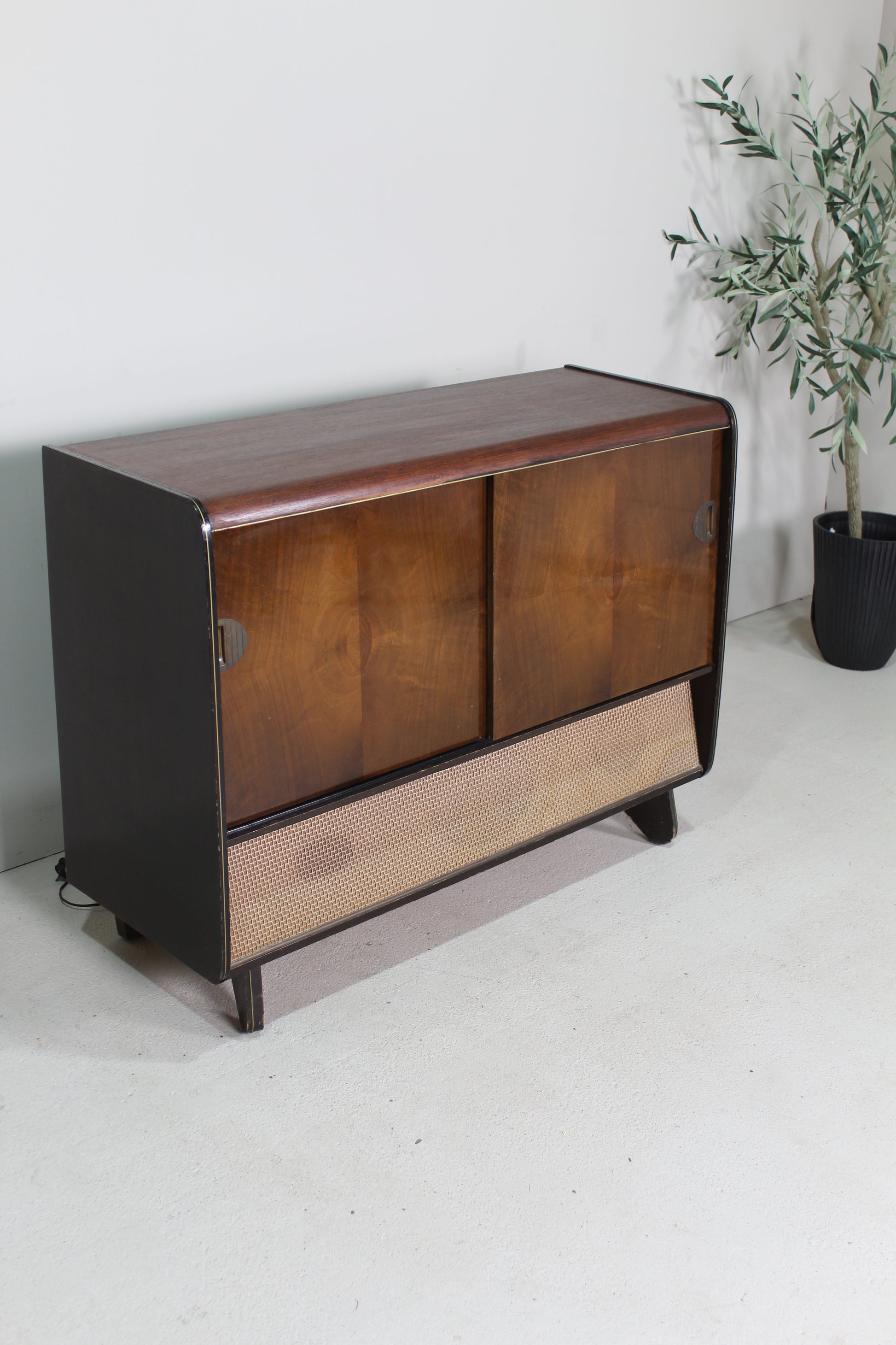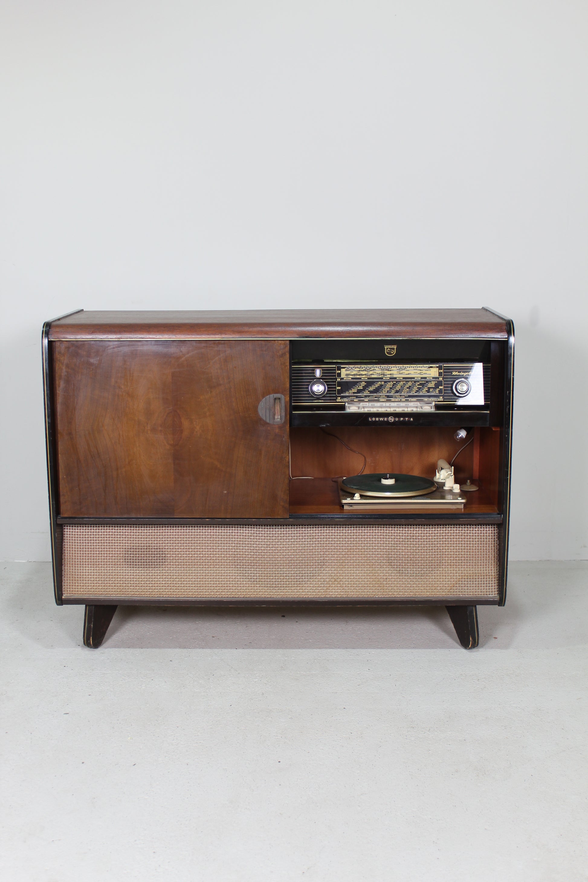 Deze geweldig mooie muziekkast, audiomeubel of radiokast komt uit de jaren '50! Hij is van het merk Loewe Opta.