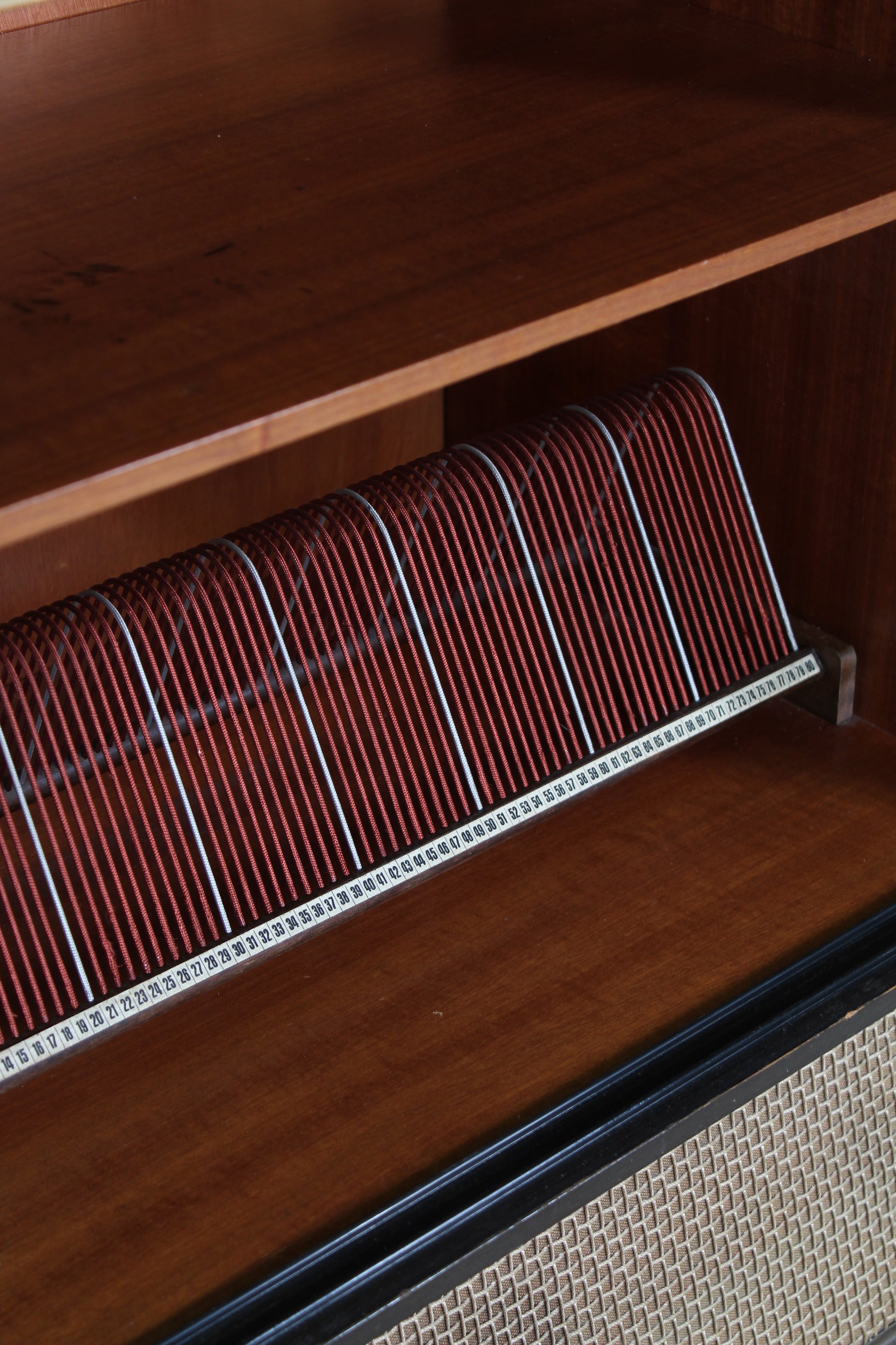 De radio is werkend, en moet zoals bij een buizenradio soms even opwarmen. De platenspeler werkt helaas niet meer (zoals in de meeste gevallen uit deze tijd). Daar hebben we wat op bedacht: deze kast kan worden voorzien van Novatone! Met Novatone verbind je eenvoudig je mobiel met de vintage speakers, waardoor je je favoriete Spotifylijstjes door de oude speakers afspeelt. Zo luister je de nieuwste muziek met fantastisch geluid uit deze eyecatcher. Hier lees je meer over Novatone.